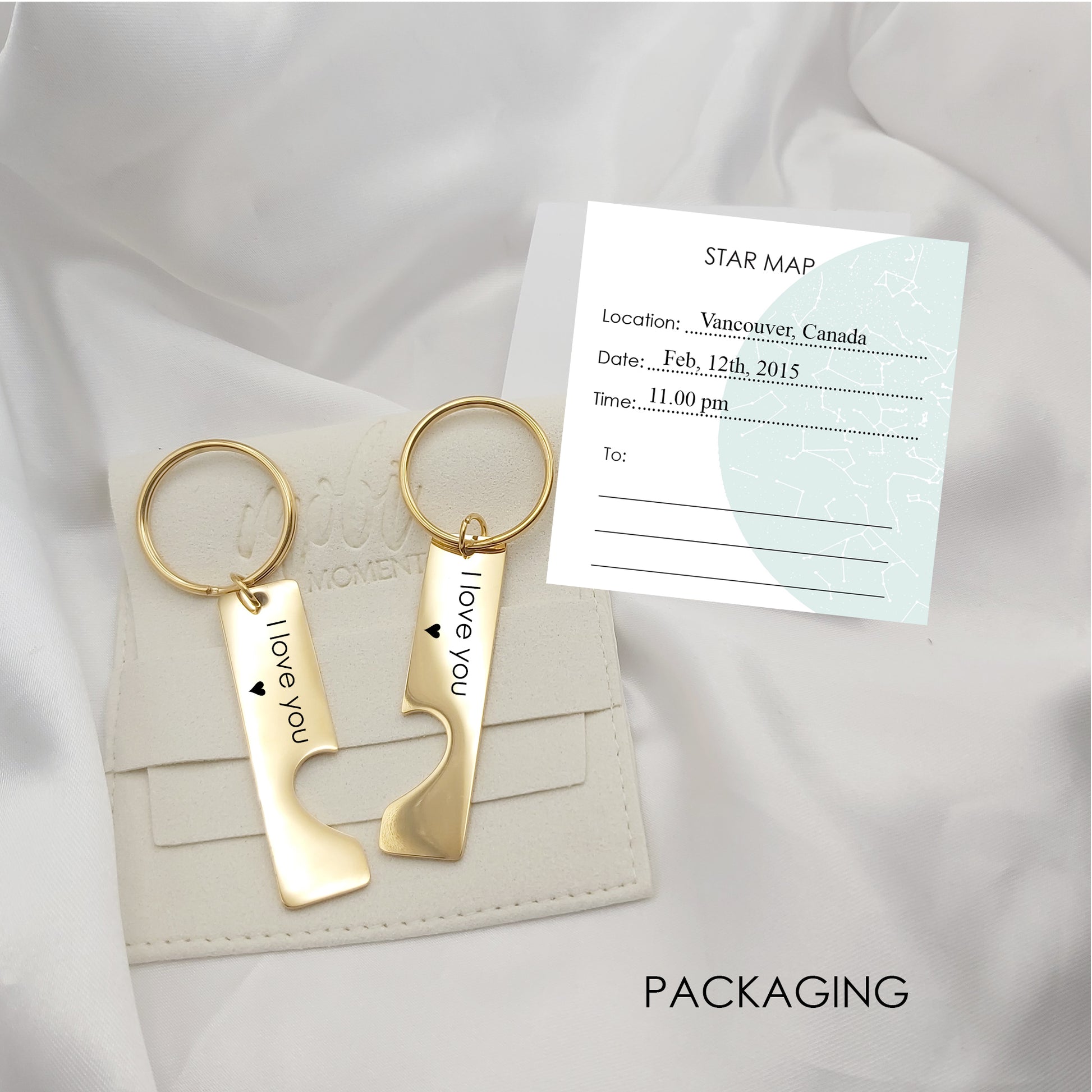 Stainless Steel custom Night Sky Star Map set of two keychains made with care and attention to detail, this keepsake makes a great gift for any special occasion! Perfect to remember first dates, first kiss, engagement, wedding anniversary, birth of child, birthday, baptism and more!