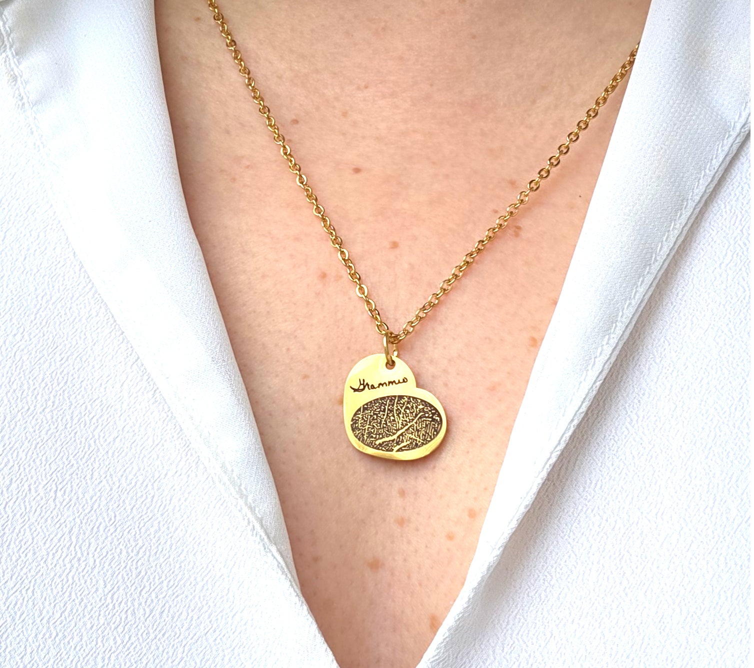 Personalized thumbprint necklace made of stainless steel engraved with short messages or your loved one handwriting on the back side. To create this keepsake you will need to send us a fingerprint image of your loved one and the handwriting image (only in case you want it engraved on the back side), we will be able to work with any image, as long as it is not blurry, just take a clear photo of the images and send them to us via Etsy chat and will send you a mockup for your approval.